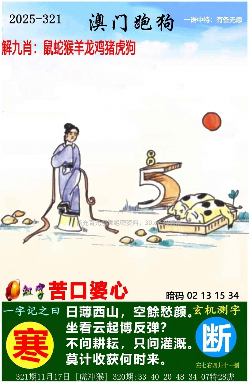 | 321期⑤肖 | 蛇狗猪龙羊 | 開羊23准 |